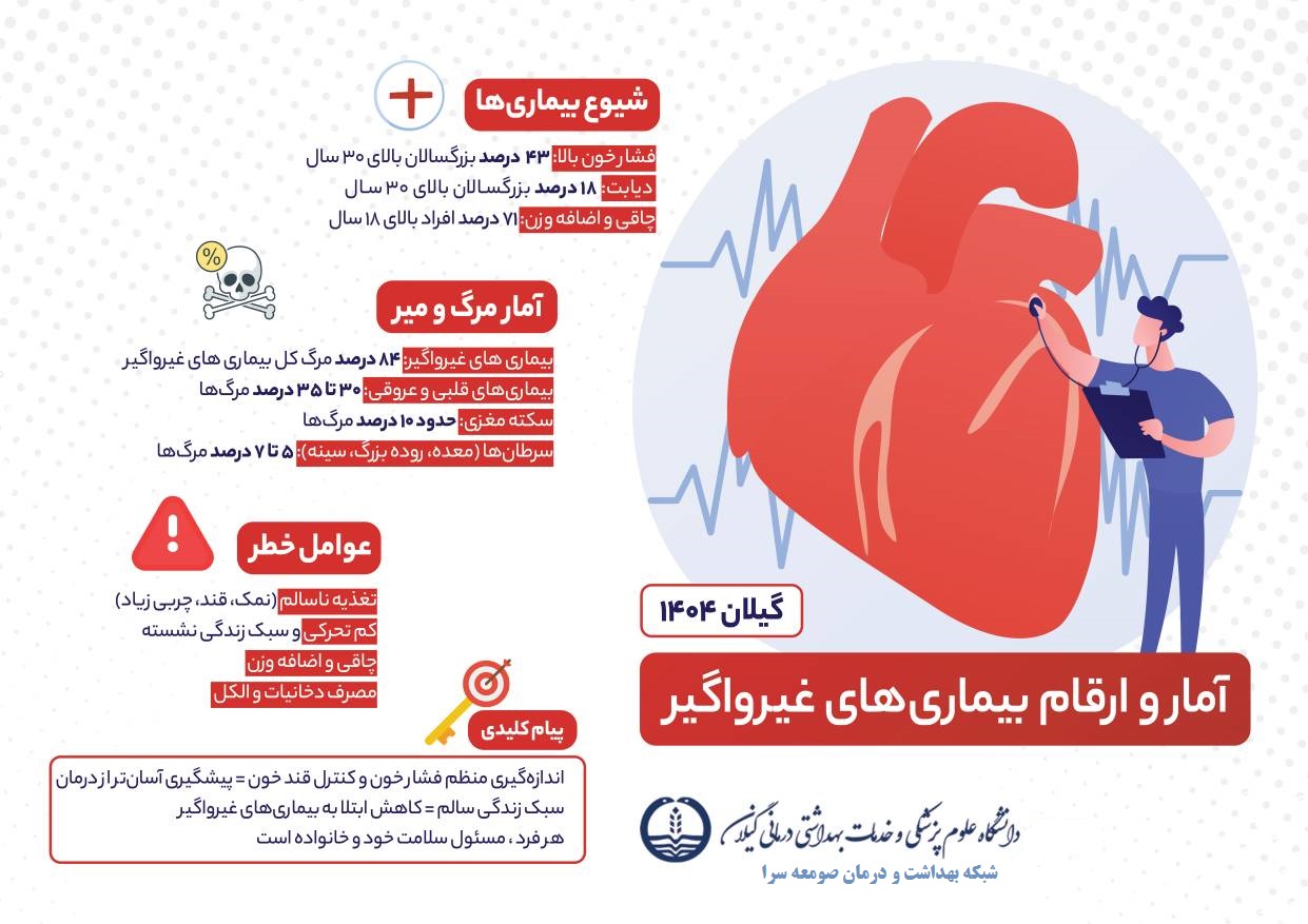 آمار و ارقام بیماری های غیر واگیر آمار و ارقام بیماری های غیر واگیر در استان گیلان به روایت تصویر گروه خبری : اطلاعیه ها کد خبر : 148273 کپی لینک کوتاه کلمات کلیدی