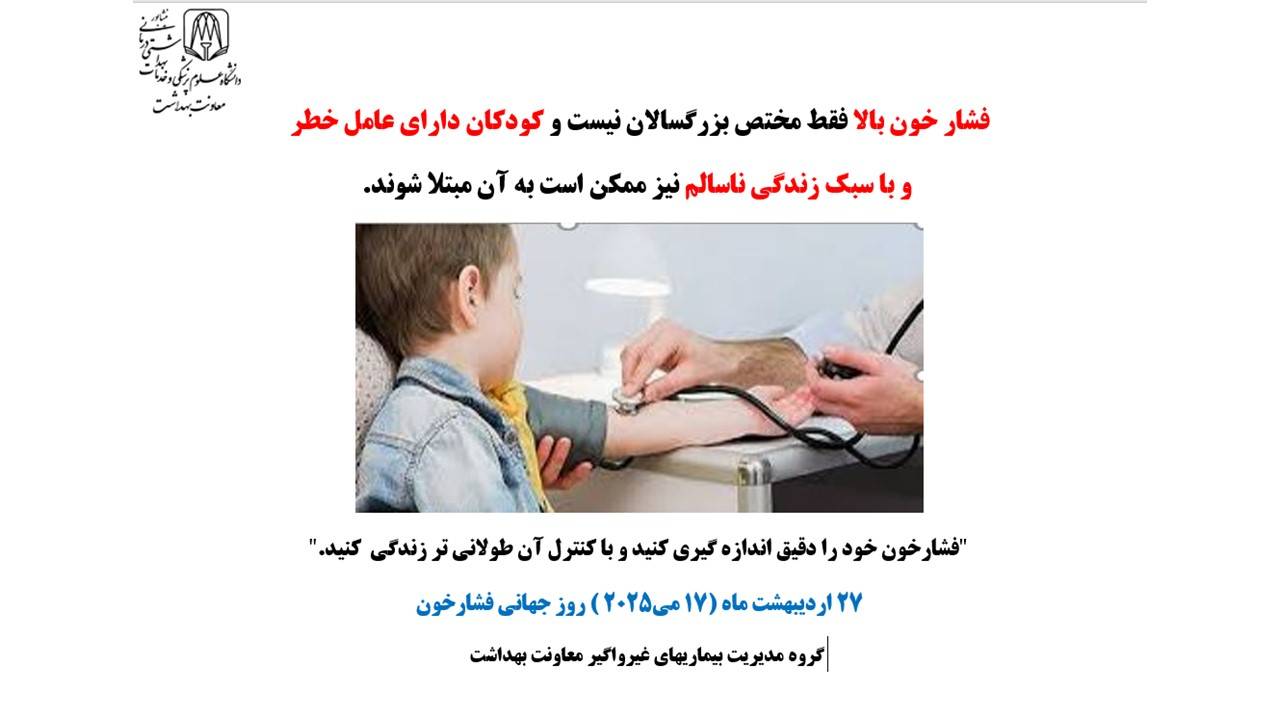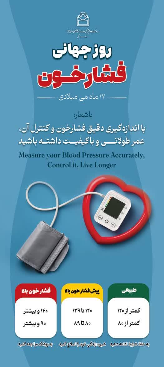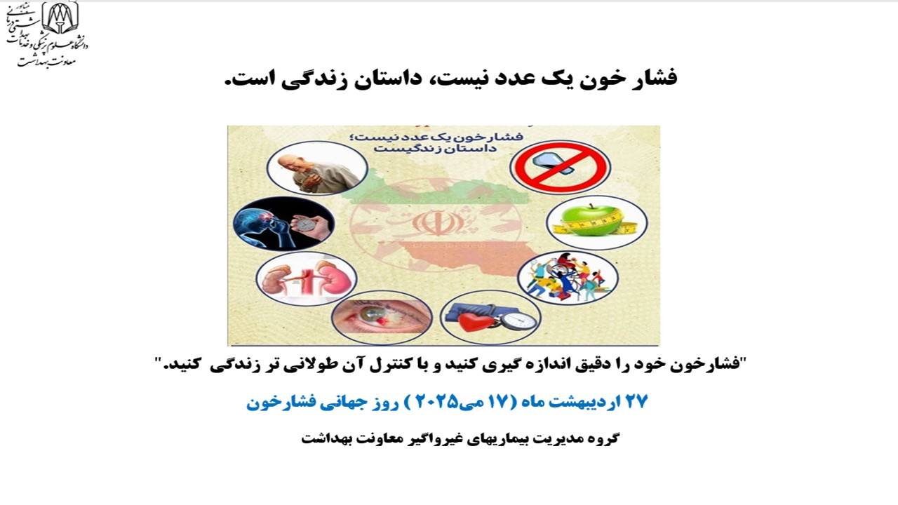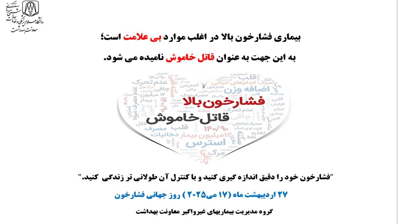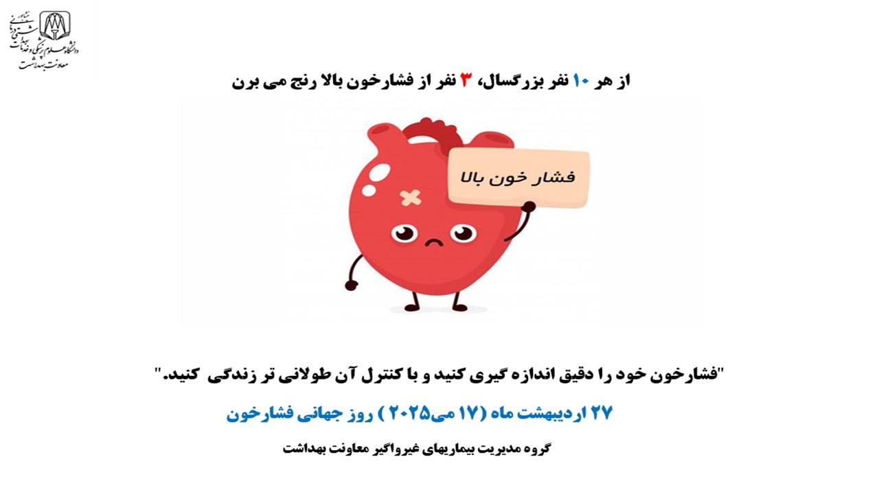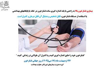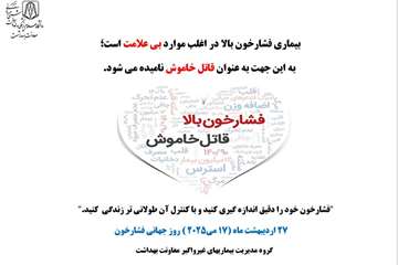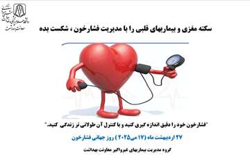 بسته پیام های تصویری روز جهانی فشار خون (27 اردیبهشت )جهت استفاده عموم در سربرگ اطلاعیه ها و گزارش تصویری در دسترس است.