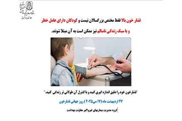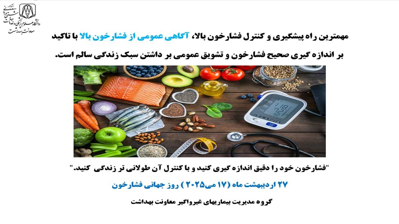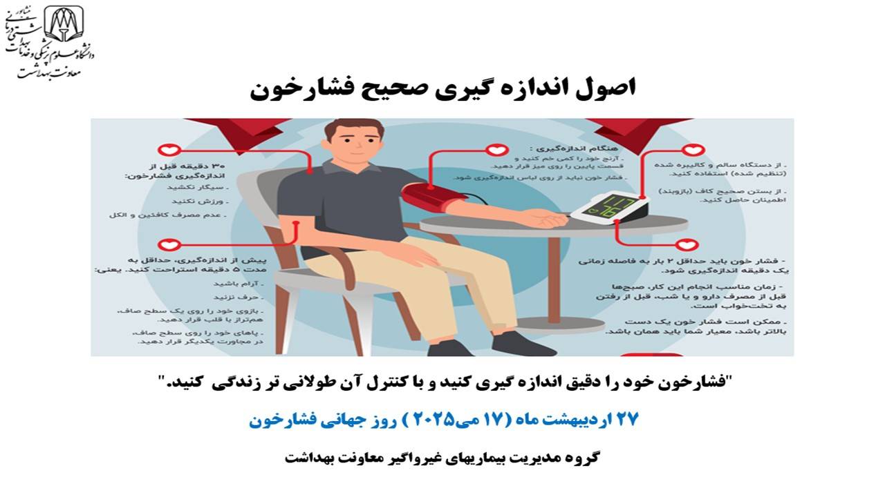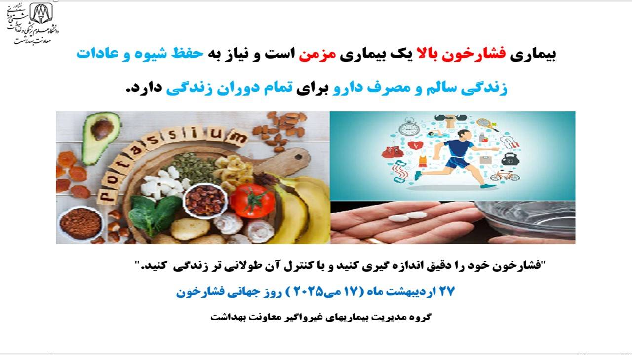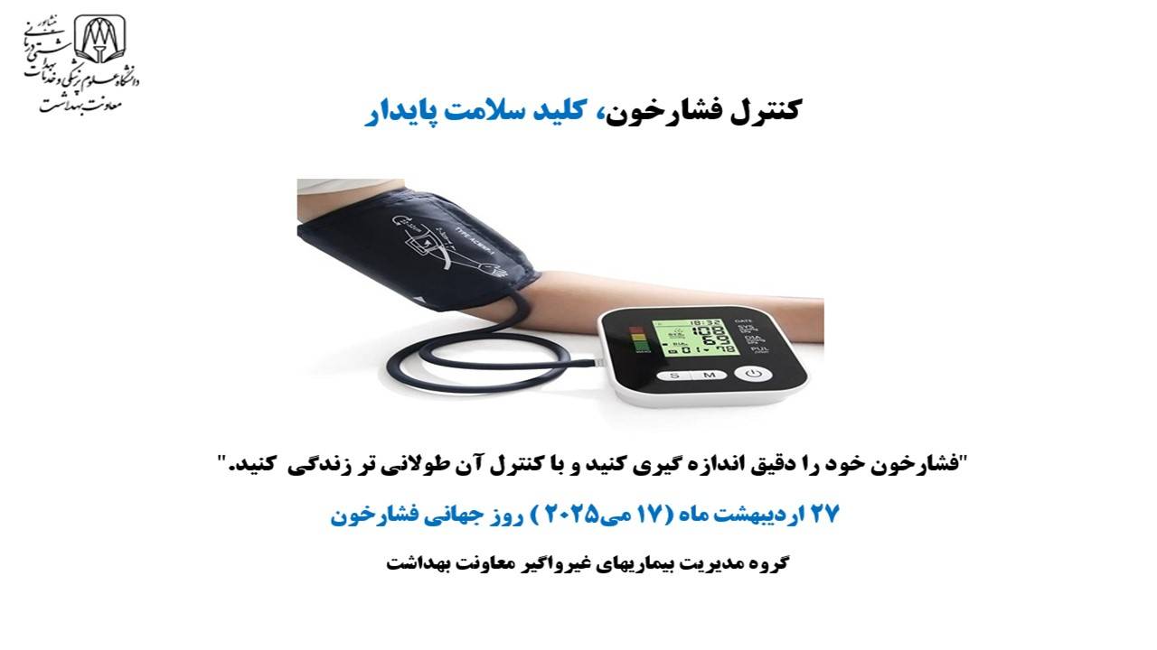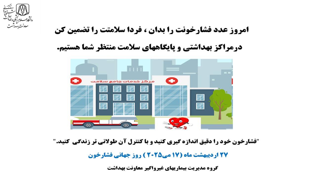 بسته پیام های تصویری روز جهانی فشار خون (27 اردیبهشت )جهت استفاده عموم در سربرگ اطلاعیه ها و گزارش تصویری در دسترس است.