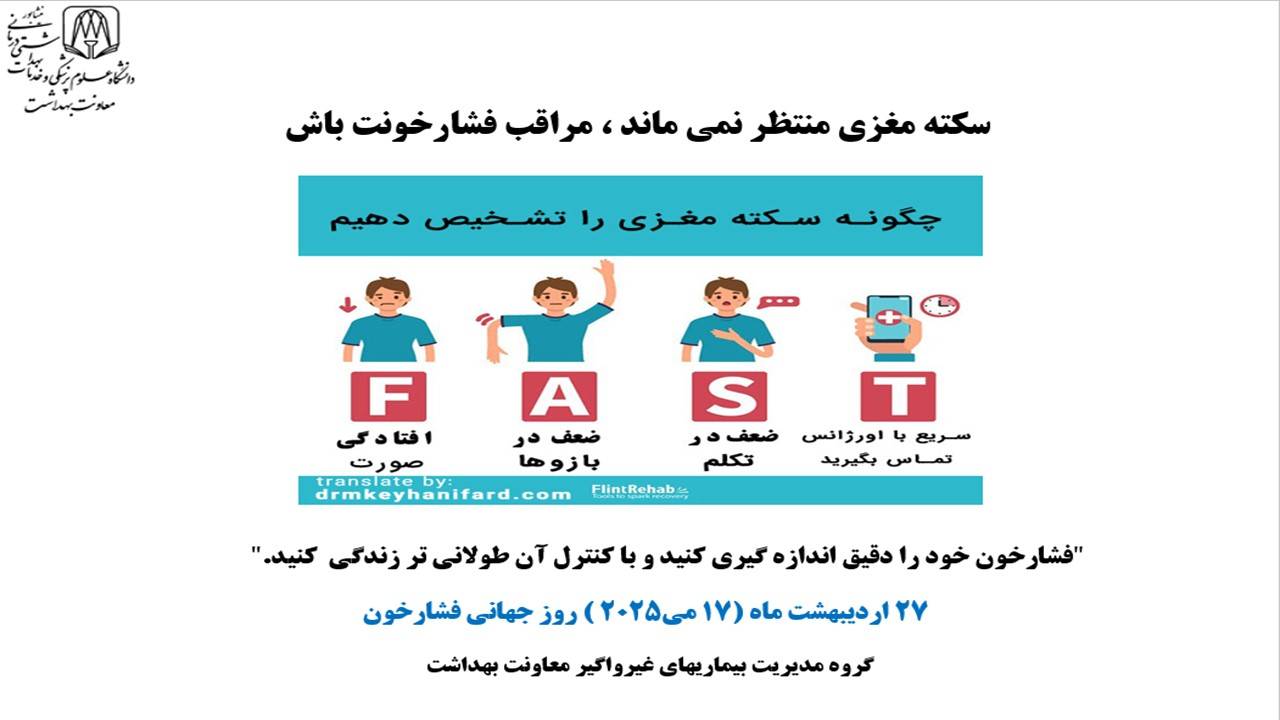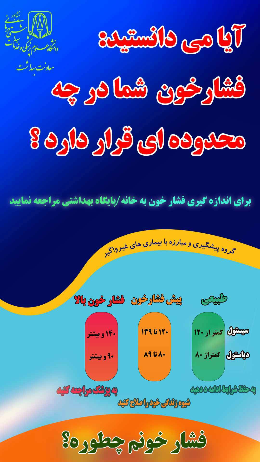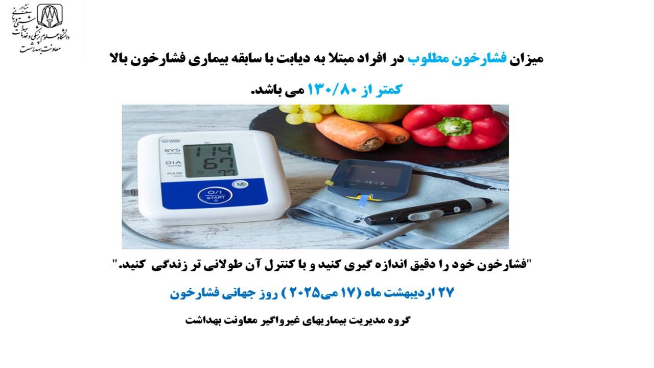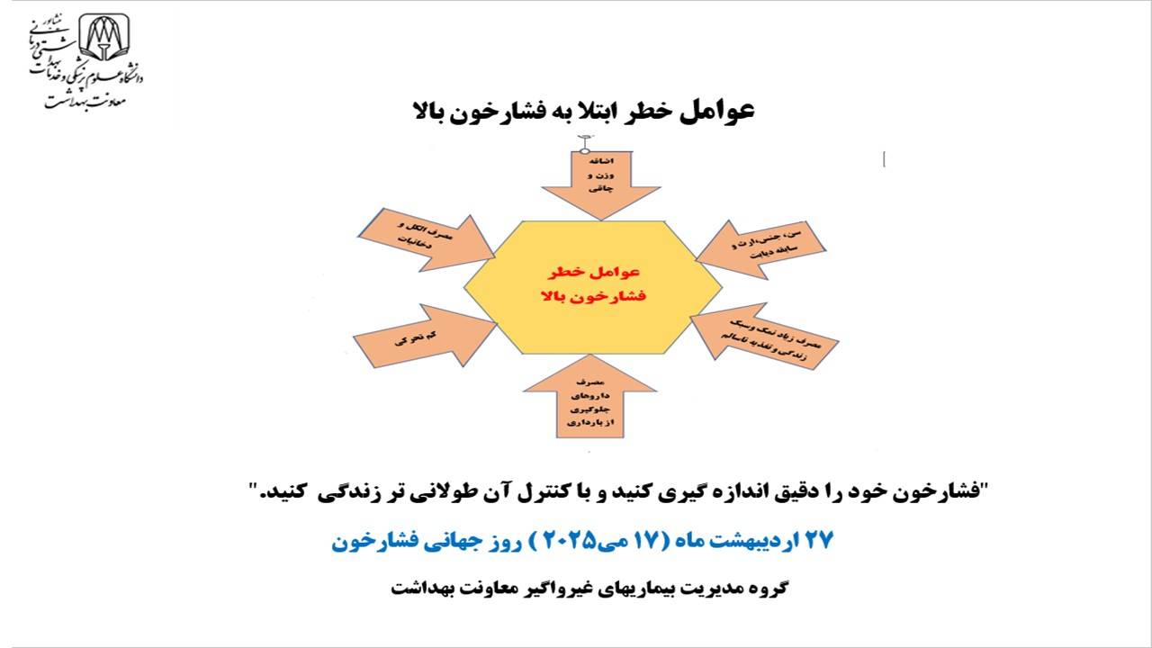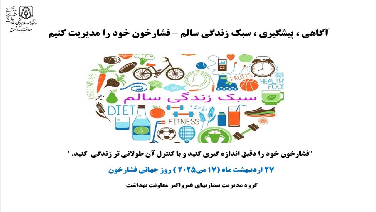 بسته پیام های تصویری روز جهانی فشار خون (27 اردیبهشت )جهت استفاده عموم در سربرگ اطلاعیه ها و گزارش تصویری در دسترس است.