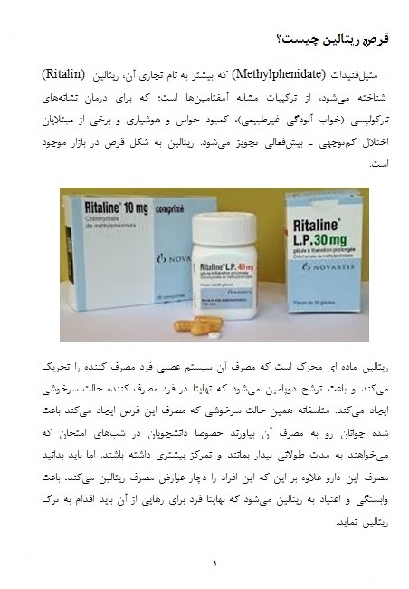 بسته آموزشی واحد سلامت روان مرکز بهداشت صومعه سرا در ارتباط با قرص ریتالین