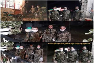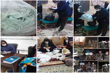 تهیه ماسک و توزیع آن در سطح روستا و گندزدایی روستای شانده تنیان توسط بسیجیان