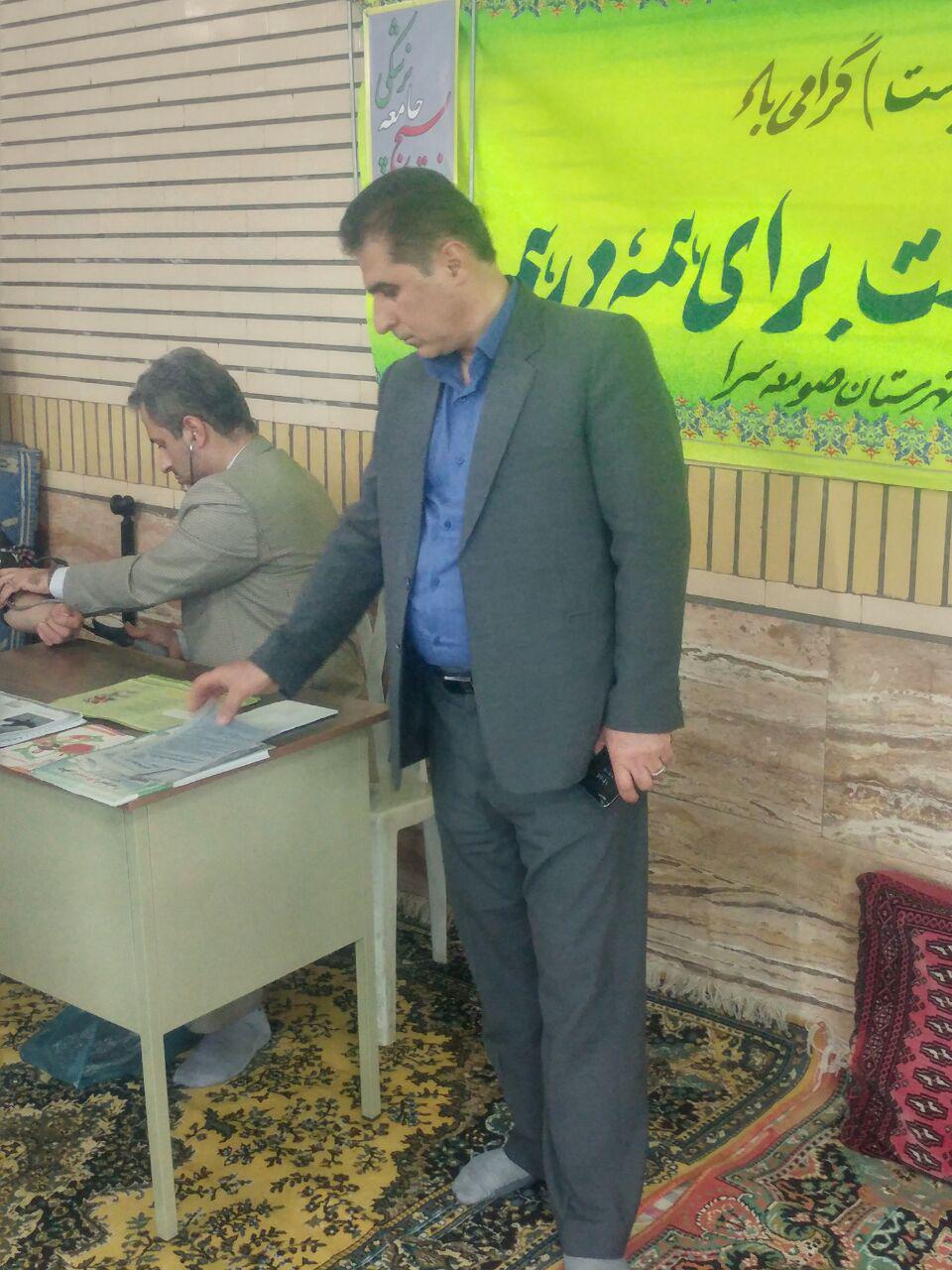 به مناسبت هفته سلامت در تاریخ 7 اردیبهشت بسیج جامعه پزشکی صومعه سرا با استقرار در مصلی نماز جمعه این شهر نسبت به ویزیت رایگان نمازگزاران اقدام کرد .